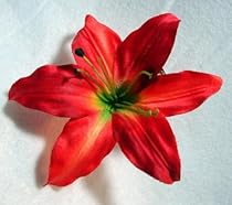 Sunset Lily Hair Flower Clip - Beautiful Sunset Orange Colored Lily Flower 4 Inch Diameter Alligator Clip Satin-like Petals